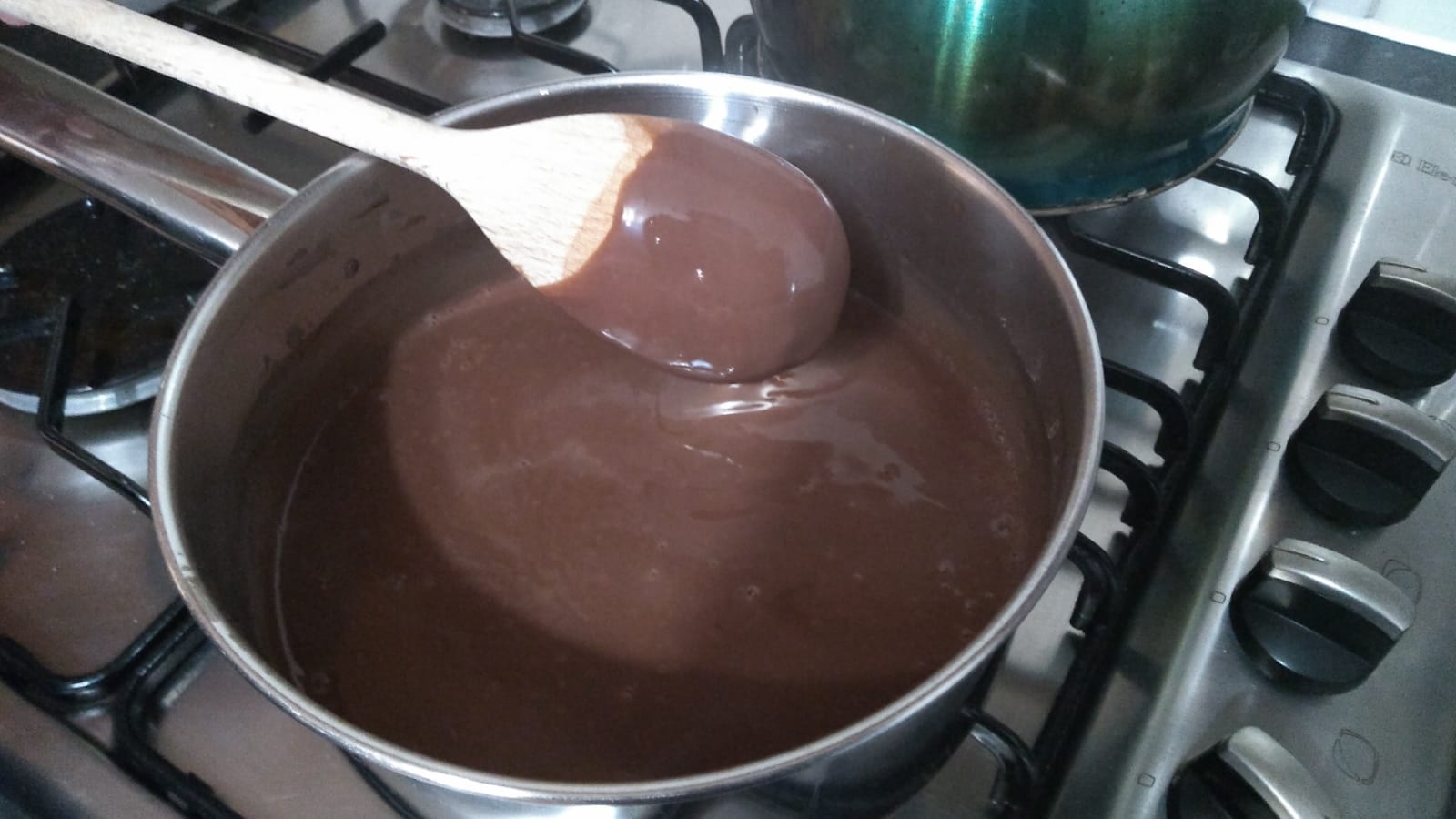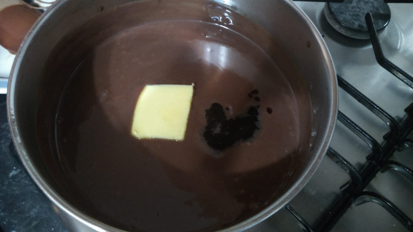 Yes, I realise the last image looked like honeycomb and this looks like chocolate, but I assure you after this step, your's will look as glossy as a professional mousse. Once it has completely thickened, remove from the heat and add the vanilla and the butter. The vanilla adds more flavour and the butter is the ingredient that makes it glossy.