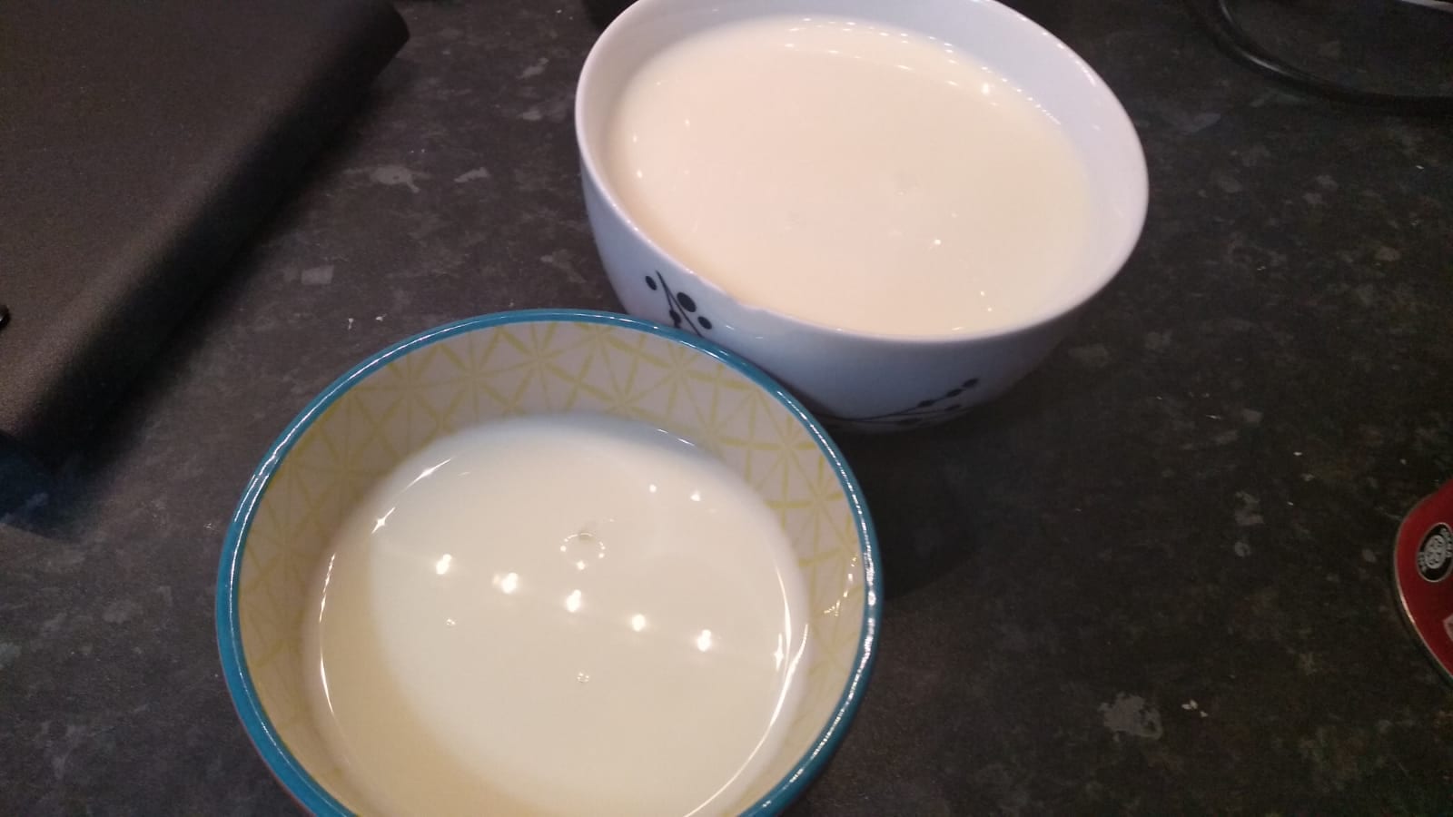 Turn on the heat, medium-high and add the milk. Stir with the spoon for 2-3 minutes until thick and bubbly.