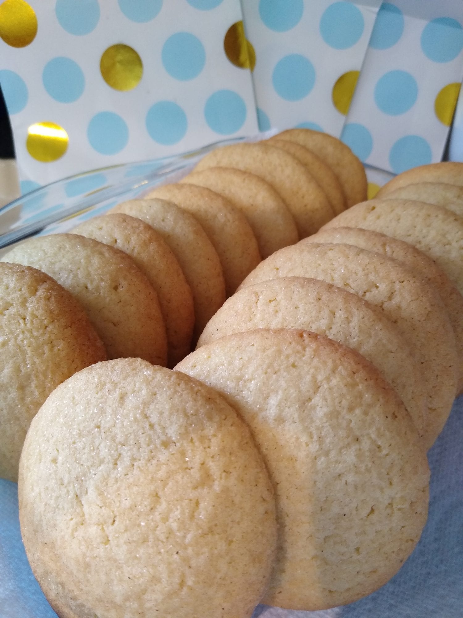 Mix the 1/2 cup of sugar and the spoonfull of cinammon in a bowl. Form balls about 2 1/2cm in diameter and roll them in the cinammon sugar, place the balls in a lined baking tray leaving a 10cm gap in between each of them, then press each ball with the palm of your hand to flatten to 1cm height.